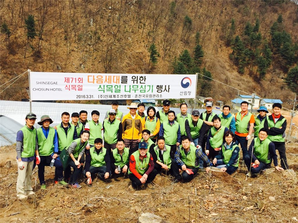 신세계조선호텔이 제71회 식목일을 맞아 지난달 31일 춘천 국유림관리소와 함께 경기도 가평군 설악면 소재 국유림에서 '다음 세대 나무심기' 행사를 진행했다. 사진=신세계조선호텔