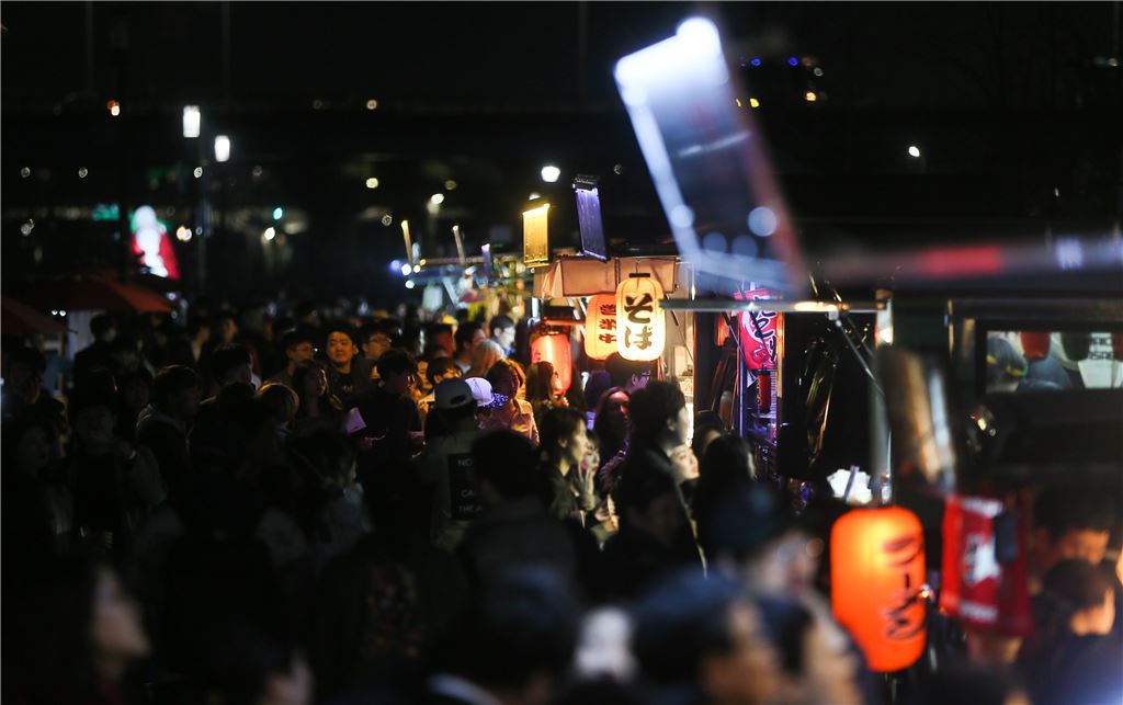 ▲지난달 31일 서울 여의도 한강공원 물빛광장에서 올해 처음 열린 '서울 밤 도깨비 야시장'을 찾은 시민들이 음식을 사기 위해 푸드트럭 앞으로 줄을 서 기다리고 있다. (출처: 연합뉴스)