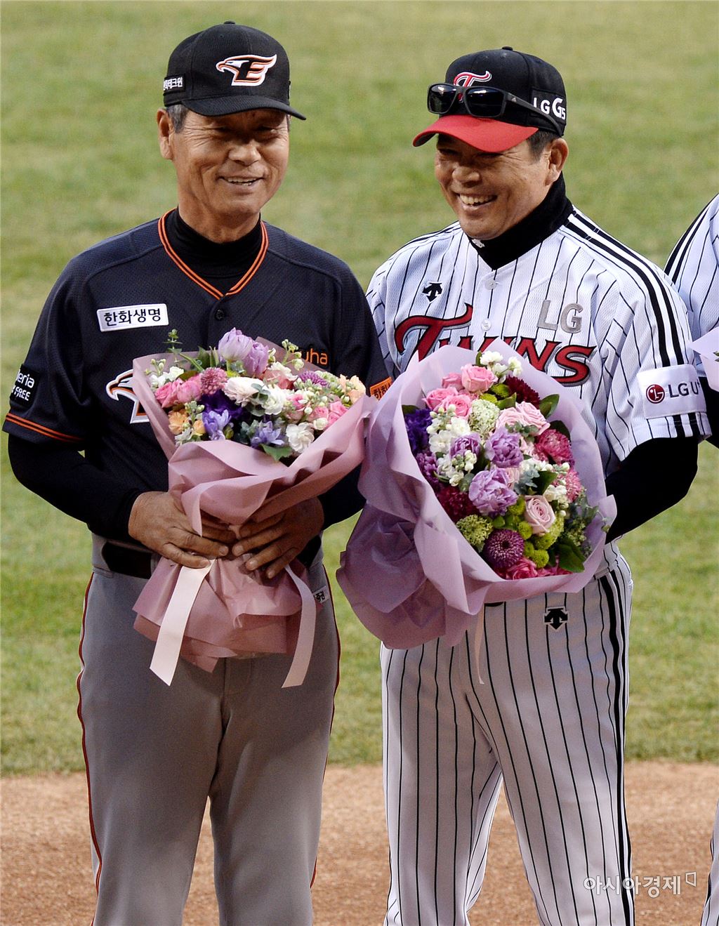 [잠실=아시아경제 김현민 기자] 프로야구 한화 이글스와 LG 트윈스의 2016시즌 개막전이 1일 잠실구장에서 열렸다. 경기에 앞서 LG 양상문 감독과 한화 김성근 감독이 미소짓고 있다. 김현민 기자 kimhyun81@asiae.co.kr<ⓒ세계를 보는 창 경제를 보는 눈, 아시아경제(www.asiae.co.kr) 무단전재 배포금지>