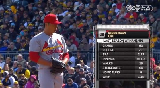 [아시아경제 이종윤 인턴기자] 오승환(34·세인트루이스 카디널스)이 메이저리그 데뷔무대를 성공적으로 마쳤다.오승환은 4일(한국시간) 미국 펜실베니아주 피츠버그의 PNC파크에서 열린 피츠버그 파이어리츠와의 2016 MLB 정규시즌 개막전에서 0-3으로 뒤진 7회말에 등판해 1이닝을 던져 무실점으로 막았다. 빅리그 첫 등판의 압박감 때문인지 첫 타자 맷 조이스를 볼넷으로 내준 오승환은 이후 특유의 침착함을 되찾으며 데이빗 프리즈와 스탈링 마르테를 연속 삼진으로 위기를 탈출했다.경기 직후 매시니 감독은 오승환의 다소 난조를 보였던 피칭에 대해 "(첫 등판하는 투수가 위기에 빠지는 것은) 자주 있는 일이기도 하다. 하지만 잘 던져줬다"라고 오승환의 데뷔피칭을 평가했다.이날 오승환은 1이닝 동안 다섯 타자를 상대하며 2볼넷 2삼진을 기록했고, 최고구속은 93마일(약 150㎞)까지 나왔다. 경기는 피츠버그가 4대1로 승리했다.한편 오승환은 이상훈, 구대성, 임창용에 이어 KBO리그와 일본 프로야구를 거쳐 메이저리그에서 던진 4번째 한국인 투수가 됐다.이종윤 인턴기자 yagubat@asiae.co.kr<ⓒ세계를 보는 창 경제를 보는 눈, 아시아경제(www.asiae.co.kr) 무단전재 배포금지>