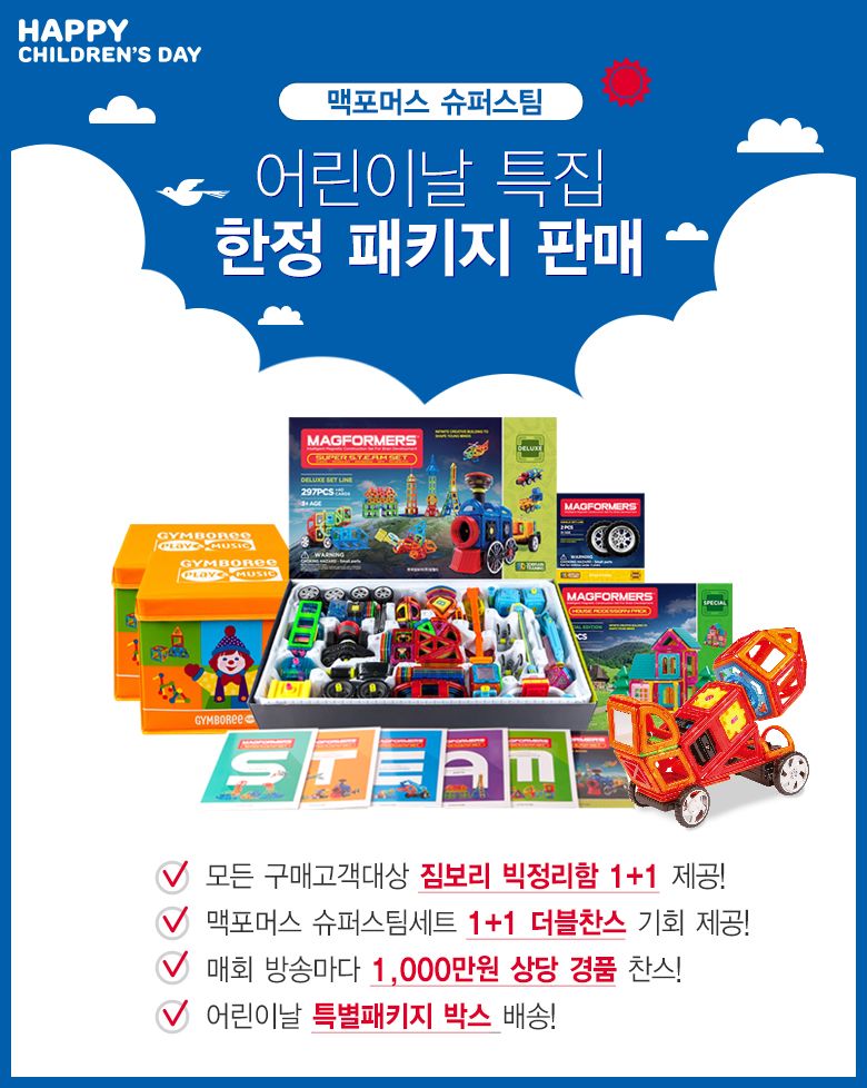 [아시아경제 조강욱 기자] 한국짐보리㈜짐월드(대표 박기영, 이하 ㈜짐월드)는 3차원 입체자석교구 '맥포머스 슈퍼 스팀(Super S.T.E.A.M) 어린이날 특별 패키지'를 오는 6일 롯데홈쇼핑에서 선보인다고 4일 밝혔다.맥포머스 슈퍼 스팀 어린이날 특별 패키지는 한 달여간 롯데홈쇼핑에서 단독 판매되며, 오는 6일 판매 첫 방송은 오전 10시 25분부터 11시 35분까지 70분간 진행된다. 맥포머스 슈퍼 스팀 어린이날 특별 패키지에는 ▲맥포머스 슈퍼 스팀 본 구성(297PCS + 40Cards)에 ▲짐보리 빅정리함 1+1 ▲슈퍼 스팀 3D 브레인 트레이닝 세트가 추가 구성으로 제공되고, 특별 사은품으로 ▲맥포머스 하우스 액세서리 팩 25pcs와 ▲맥포머스 빅휠세트 2pcs가 포함되어 있다.㈜짐월드는 맥포머스 슈퍼 스팀 어린이날 특별 패키지 출시를 기념하여 어린이날 특별 구성 제품을 기간 내 구매한 고객을 대상으로 총 30명을 추첨, 맥포머스 슈퍼 스팀 세트를 한 세트 더 증정하는 이벤트를 진행한다. 또한, 같은 기간 매회 방송마다 추첨을 통해 51명에게 1,000만원 상당의 '맥포머스 헤비듀티 세트(73pcs)'를 경품으로 증정한다.맥포머스 슈퍼 스팀 어린이날 특별 패키지는 일시불 구매 시 3만원 할인, 방송 중 구매 시 적립금 5% 지급, 롯데홈쇼핑의 모바일 어플리케이션 '바로TV톡' 참여시 5% 추가적립금이 지급된다.한국짐보리㈜짐월드 관계자는 "다가오는 어린이날을 맞이하여 더욱 풍성한 구성과 혜택을 제공하는 특별 패키지를 준비했다"라며, "아이와 부모가 함께 즐기며 교육적 효과까지 겸하고 있는 맥포머스는 최고의 어린이날 선물이 될 것"이라고 밝혔다.한편, '맥포머스 슈퍼 스팀'은 더욱 견고하고 다양해진 모양의 자석피스, 파워블록과 엔진블록이 결합되어 보다 파워풀한 움직임을 제공하는 파워엔진블록, 실물과 더욱 비슷한 모양과 기능으로 디테일을 살린 바퀴, 압축된 공기의 힘으로 조형물을 움직일 수 있도록 설계된 에어블록 등 조형물의 힘 있는 움직임과 디테일한 표현이 가능하도록 한층 강화된 제품이다. 더 자세한 내용은 맥포머스 공식 홈페이지(www.magformers.co.kr) 및 혹은 02)596-0949에서 확인할 수 있다. 조강욱 기자 jomarok@asiae.co.kr<ⓒ세계를 보는 창 경제를 보는 눈, 아시아경제(www.asiae.co.kr) 무단전재 배포금지>