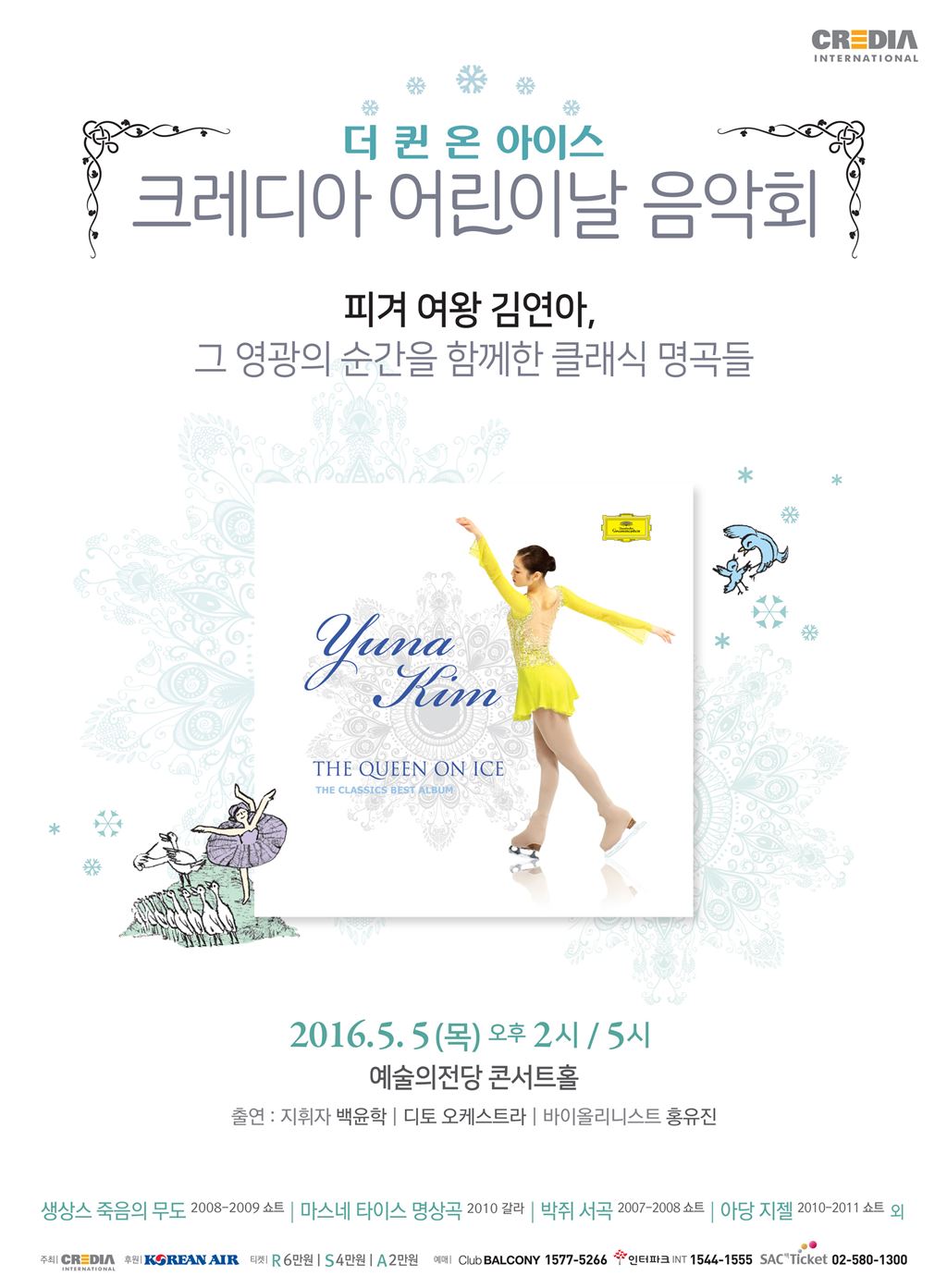 내달 5일 예술의전당 '더 퀸 온 아이스-크레디아 어린이날 음악회'