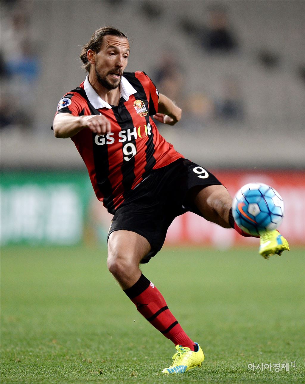 [상암=아시아경제 김현민 기자]2016 AFC 챔피언스리그(ACL) FC서울과 산둥 루넝(중국)과의 조별리그 4차전이 5일 서울월드컵경기장에서 열렸다. 서울 데얀이 발리슛을 시도하고 있다. 김현민 기자 kimhyun81@asiae.co.kr<ⓒ세계를 보는 창 경제를 보는 눈, 아시아경제(www.asiae.co.kr) 무단전재 배포금지>