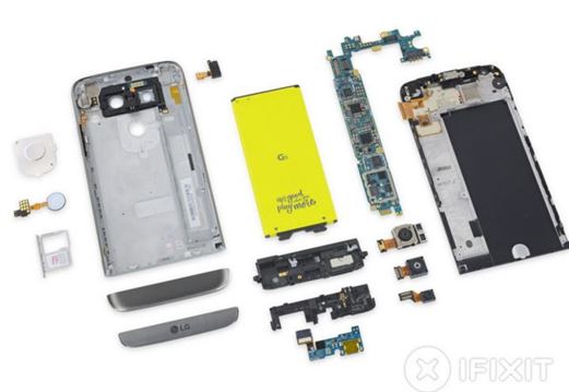 LG전자 G5 분해한 모습(출처:IFIXIT)