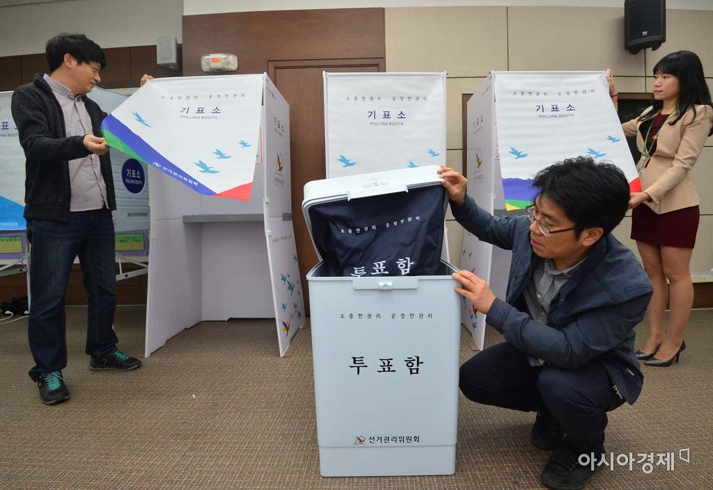[아시아경제 백소아 기자] 제20대 국회의원선거 사전투표를 하루 앞둔 7일 서울 노원구 노원구청에서 직원들이 사전투표소 설치 작업을 하며 분주하게 움직이고 있다.백소아 기자 sharp2046@asiae.co.kr<ⓒ세계를 보는 창 경제를 보는 눈, 아시아경제(www.asiae.co.kr) 무단전재 배포금지>