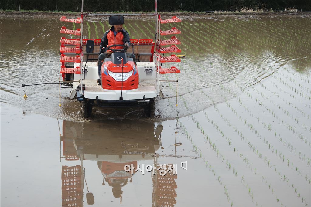 [아시아경제 노해섭 기자]보성군 율어면에서 올해 첫 모내기가 6일 율어리 자모마을 앞들에서 이뤄졌다. 이날 박석균 씨(남 61세)는 논 4.7ha중 3,098㎡(1,200평)에 조생종 해담벼를 이앙기로 심었다. 박 씨는 지난 3월 5일 농촌진흥청에서 자체 개발한 해담벼(조생종)를 파종해 한 달여 만에 모내기를 했으며, 앞으로 우렁이를 이용한 친환경농법으로 재배하여 수확한 추석 제수용 햅쌀을 전국 농협 하나로마트에 판매할 계획이다. 특히 일반 논보다 약 25일가량 빨리 모내기를 해 햅쌀 생산도 빨라지는 덕에 시중가격보다 7만원 정도 높은 가격(80kg 가마당 25만원)을 받을 수 있을 것으로 기대되며, 벼 수확 후 가을배추나 감자 등 이모작이 가능해 높은 부가가치를 창출할 수 있다. 안종신 농축산과장은 “올해는 평년보다 계절이 빨라 모내기가 조금 앞당겨질 같다”면서 “고품질 쌀 안정생산과 기상재해에 대비하기 위해 지역별로 적정시기에 모내기를 해 달라”고 당부했다.노해섭 기자 nogary@<ⓒ세계를 보는 창 경제를 보는 눈, 아시아경제(www.asiae.co.kr) 무단전재 배포금지>