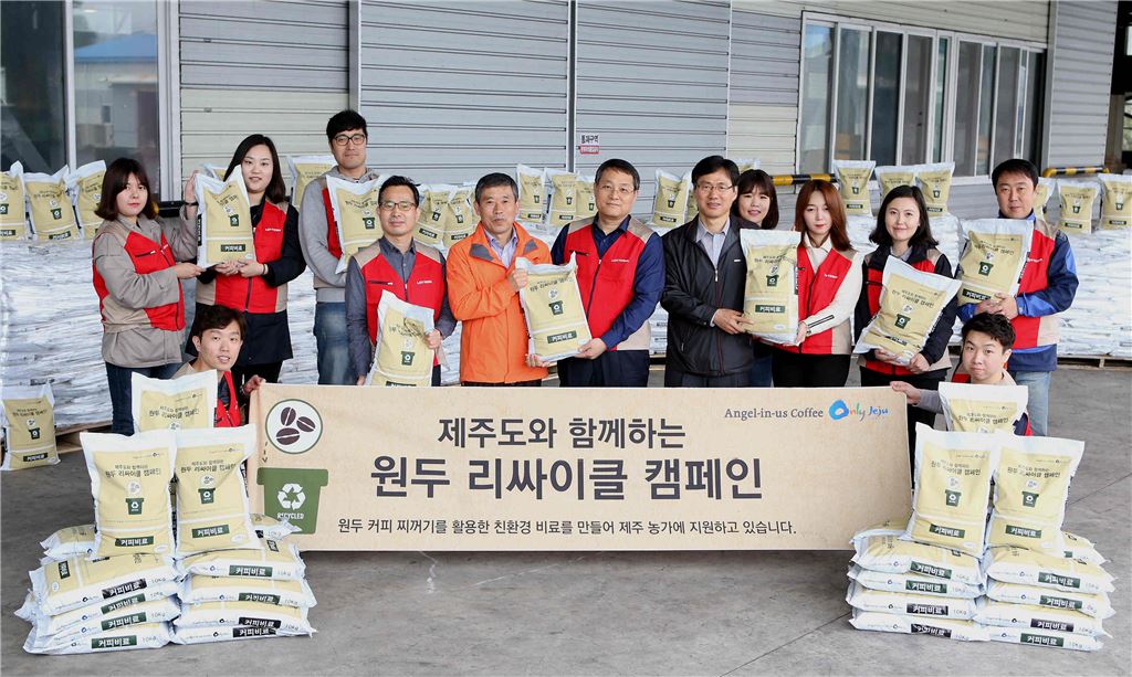 [아시아경제 오주연 기자]엔제리너스커피가 친환경 자원 재순환을 위해 제주도와 함께 ‘원두 리싸이클 캠페인’을 진행한다고 8일 밝혔다. 이번 캠페인은 친환경 자원 재순환 사업의 일환으로 연간 커피 찌꺼기를 활용해 만든 비료 500t을 취약 농가에 지원하는 활동이다. 이를 위해 지난 7일 제주 위미농협에서 노일식 롯데리아 대표와 제주도청 식품산업과의 박성수 과장, 위미농협의 김종석 조합장과 롯데리아 임직원 봉사단 '프론티어' 30여명이 참석해 비료 전달식을 진행했다. 1차로 지원되는 친환경 비료는 20t 분량의 커피퇴비 2100포대로, 제주지역 200여 농가에 공급될 예정이다.엔제리너스커피 관계자는 "제주 특산물을 활용한 신제품을 개발하고, 지원 농가의 비용절감을 유도하며 우수한 원재료를 안정적으로 확보해 나가기 위해 ‘원두 리싸이클 캠페인’ 진행하게 됐다"며 "앞으로도 엔제리너스커피를 통해 제주 산업 발전을 위한 다양한 캠페인을 진행할 것"이라고 전했다. 오주연 기자 moon170@asiae.co.kr<ⓒ세계를 보는 창 경제를 보는 눈, 아시아경제(www.asiae.co.kr) 무단전재 배포금지>