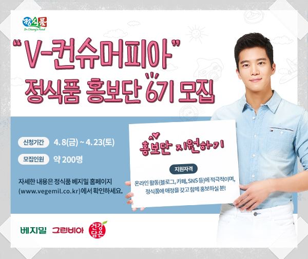 [아시아경제 이주현 기자]베지밀을 생산·판매하는 정식품은 정식품은 소비자 홍보단 'V컨슈머피아 6기'를 모집한다고 8일 밝혔다. V컨슈머피아는 베지밀, 컨슈머, 유토피아의 합성어로 식물성 건강음료 베지밀 두유를 직접 체험하고 홍보하는 소비자 홍보단을 뜻한다. 올해로 6회를 맞은 V컨슈머피아는 약 200명이 선발되며 향후 1년 동안 다양한 미션 수행을 통한 브랜드 홍보 활동과 더불어 신제품 시음, 제품 컨셉조사 등 신제품 개발에도 적극 참여하게 된다. 또한 정식품은 V컨슈머피아 중에서 우수 리뷰어 및 우수 미션 수행자를 선발해 온라인 쇼핑몰 이데이몰 적립금과 제품 지원 등 다양한 혜택을 제공할 예정이다. 건강과 두유에 관심 많거나 온라인 활동에 적극적인 분이라면 누구나 정식품 소비자 홍보단 V컨슈머피아에 지원 가능하다. 지원 방법은 정식품 홈페이지 회원 가입 후 지원서를 작성하면 완료된다. 모집은 오는 23일까지이며, 선정 결과는 5월4일 정식품 홈페이지를 통해 공지할 예정이다. 이동호 정식품 홍보팀장은 “V컨슈머피아는 정식품을 대표하는 소비자 홍보단으로서 직접 체험을 통해 보다 많은 소비자들에게 베지밀 두유의 장점을 널리 알리는 활동을 하고 있다"며 "앞으로도 지속적인 홍보단 운영을 통해 고객들과 소통하고 건강 식품 두유의 유용성과 다양한 활용법을 널리 알리도록 하겠다"고 말했다.이주현 기자 jhjh13@asiae.co.kr<ⓒ세계를 보는 창 경제를 보는 눈, 아시아경제(www.asiae.co.kr) 무단전재 배포금지>