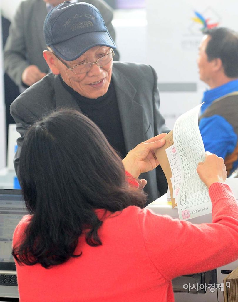 [아시아경제 백소아 기자] 제20대 국회의원 총선거 사전투표가 시작된 8일 서울 용산구 서울역 맞이방에 설치된 남영동 사전투표소에서 한 어르신이 관계자로부터 사전투표 방법 설명을 듣고 있다.백소아 기자 sharp2046@asiae.co.kr<ⓒ세계를 보는 창 경제를 보는 눈, 아시아경제(www.asiae.co.kr) 무단전재 배포금지>