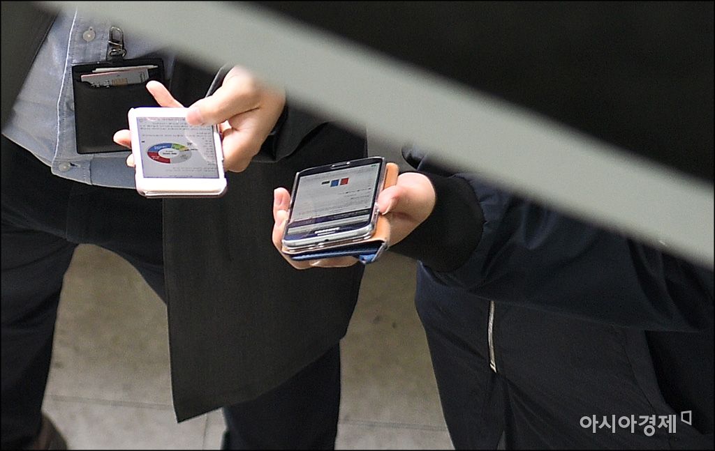[아시아경제 윤동주 기자] 사전투표가 시작된 8일 서울 종로구청에서 마련된 사전투표장에서 유권자들이 투표하기 위해 줄을 서 있는 동안 휴대폰으로 총선 관련 뉴스를 보고 있다.윤동주 기자 doso7@asiae.co.kr<ⓒ세계를 보는 창 경제를 보는 눈, 아시아경제(www.asiae.co.kr) 무단전재 배포금지>