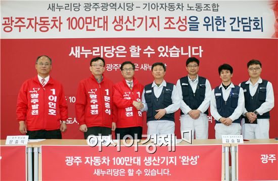 새누리당 광주시당(위원장 심판구)과 전국금속노동조합 기아자동차지부 광주지회(지회장 박주기, 이하 기아차 노조)가 ‘광주 자동차 100만대 생산도시 조성사업’성공 추진을 위해 적극 협력하기로 했다.<br />