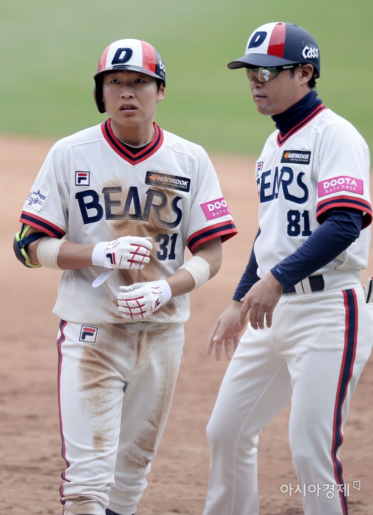 [잠실=아시아경제 김현민 기자] 프로야구 넥센 히어로즈와 두산 베어스의 2016 KBO리그 경기가 10일 서울 잠실구장에서 열렸다. 4회말 2사 만루에서 두산 정수빈이 추가 2타점 유격수 내야 안타를 치고 출루하고 있다. 김현민 기자 kimhyun81@asiae.co.kr<ⓒ세계를 보는 창 경제를 보는 눈, 아시아경제(www.asiae.co.kr) 무단전재 배포금지>