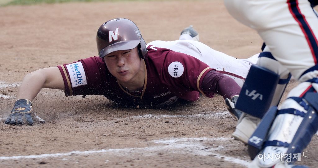 [잠실=아시아경제 김현민 기자] 프로야구 넥센 히어로즈와 두산 베어스의 2016 KBO리그 경기가 10일 서울 잠실구장에서 열렸다. 7회초 2사 1루에서 넥센 서건창의 1타점 2루타 때 1루주자 김하성이 홈으로 쇄도해 득점하고 있다. 김현민 기자 kimhyun81@asiae.co.kr<ⓒ세계를 보는 창 경제를 보는 눈, 아시아경제(www.asiae.co.kr) 무단전재 배포금지>