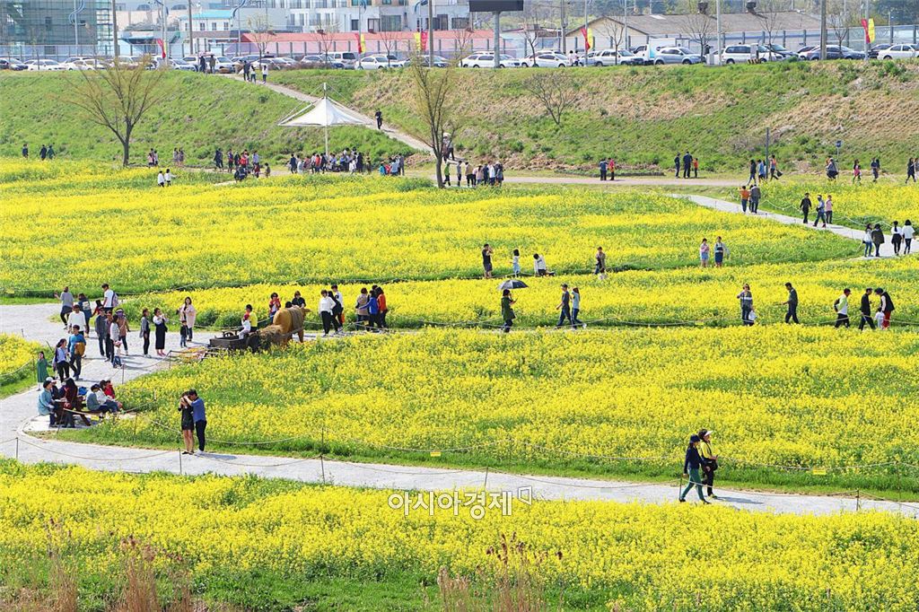 [아시아경제 문승용] 10일 나주시 영산포 둔치공원 일대에 활짝 핀 유채꽃밭에 휴일을 맞아 가족단위 나들이객들이 몰려 성황을 이뤘다. 한편 오는 15일부터 17일까지 사흘간 영산포 홍어의거리 및 둔치공원 일대에서는 제 12회 영산포 홍어축제가 열릴 예정이다.문승용 편집국부장 msynews@<ⓒ세계를 보는 창 경제를 보는 눈, 아시아경제(www.asiae.co.kr) 무단전재 배포금지>