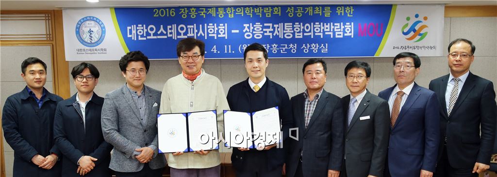 (재)장흥국제통합의학박람회 조직위원회(조직위원장 김성)와 (사)대한오스테오파시학회(학회장 조셉 킴)가 2016장흥국제통합의학박람회의 성공 개최를 위한 업무 협약을 맺었다.<br />