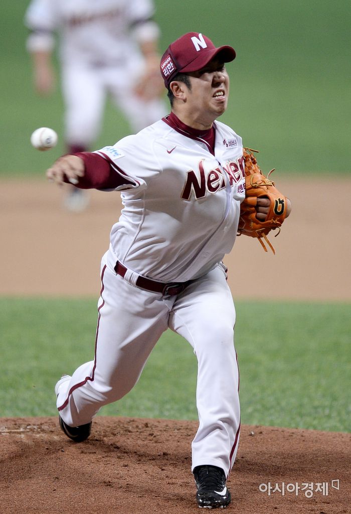 [고척돔=아시아경제 김현민 기자] 프로야구 kt 위즈와 넥센 히어로즈의 2016 KBO리그 경기가 12일 서울 양천구 고척스카이돔에서 열렸다. 넥센 선발투수 신재영이 역투하고 하고 있다. 김현민 기자 kimhyun81@asiae.co.kr<ⓒ세계를 보는 창 경제를 보는 눈, 아시아경제(www.asiae.co.kr) 무단전재 배포금지>