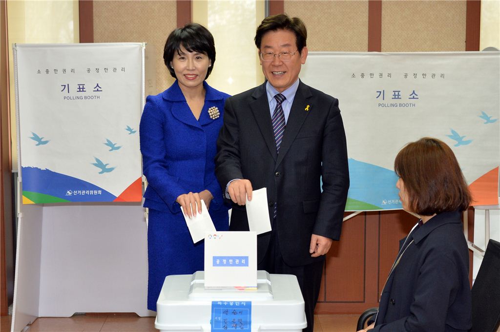 이재명 성남시장이 사전투표하고 있다.
