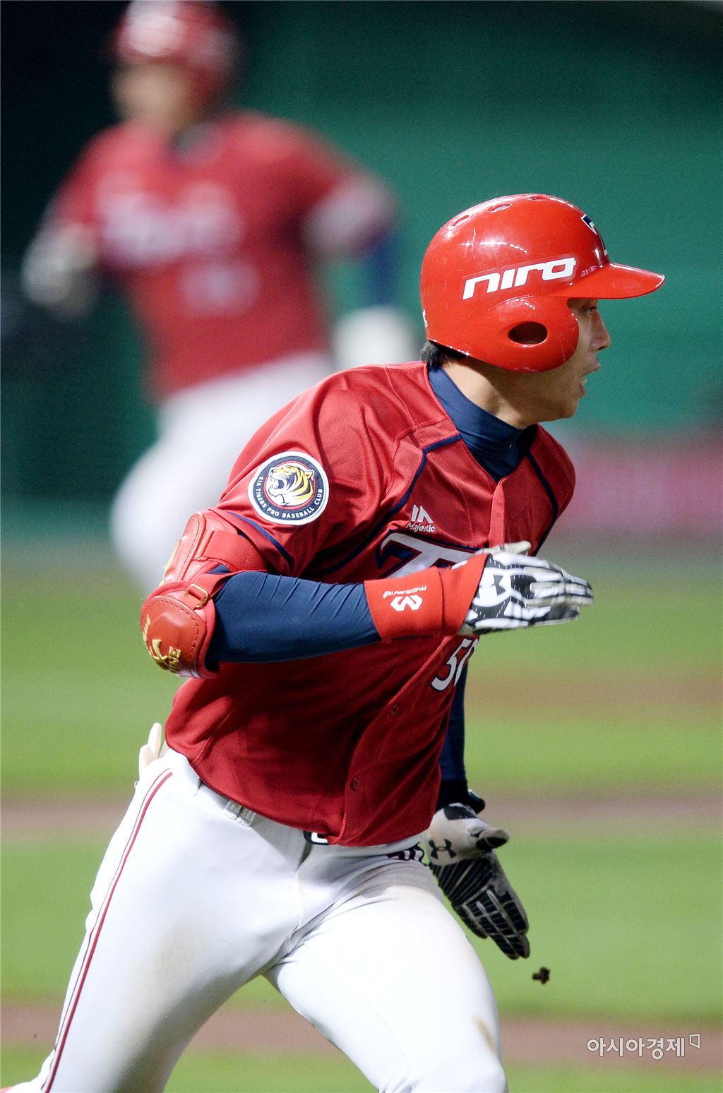[인천=아시아경제 김현민 기자] 프로야구 KIA 타이거즈와 SK 와이번스의 2016 KBO리그 경기가 14일 인천 문학구장에서 열렸다. 7회초 1사 만루에서 KIA 오준혁이 추가 1타점 적시타를 치고 베이스를 향해 달리고 있다. 김현민 기자 kimhyun81@asiae.co.kr<ⓒ세계를 보는 창 경제를 보는 눈, 아시아경제(www.asiae.co.kr) 무단전재 배포금지>