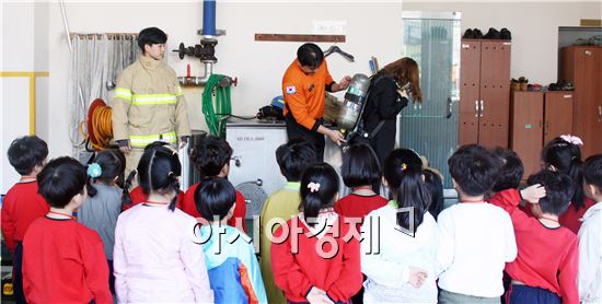광주시 북부소방서(서장 조태길)는 소방서를 방문한 아이베스트유치원 원생 및 보육교사를 대상으로 소방안전교육을 실시했다.<br />