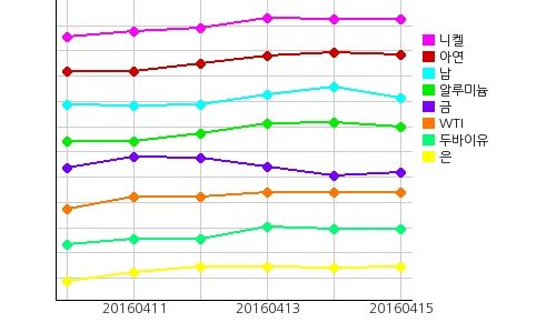 국제 원자재 시장에서 WTI(서부텍사스산원유)의 현물시세가 전일과 동일한 배럴당 41.5 달러를 기록했고, 두바이유 현물시세는 전일과 동일한 배럴당 39.66 달러를 기록했다.금 현물시세는 전일과 동일한 온스당 1234 달러를 기록했고, 은 현물시세도 전일 대비 0.07 달러 오른 온스당 16.23 달러를 기록했다.주요광물시세는 주석이 전일 대비 톤당 49 달러 올라 17249 달러를 기록했고 니켈이 상승세를 보이는 반면, 납이 전일 대비 톤당 31.85 달러 떨어져 1708.5 달러를 기록했고 알루미늄, 아연이 하향세를 보였다.환율