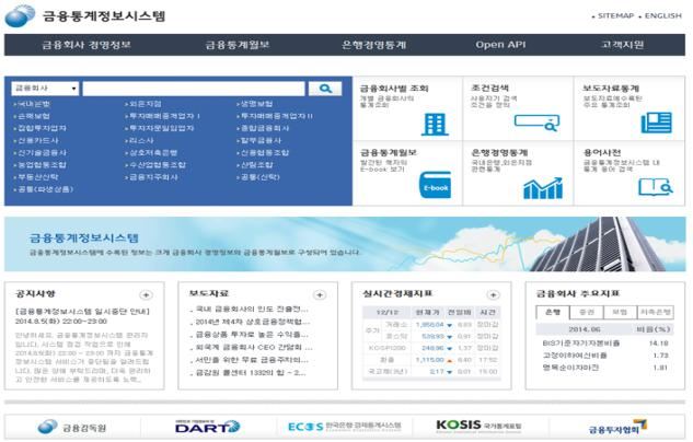 금융통계정보시스템 메인화면(자료:금융감독원)