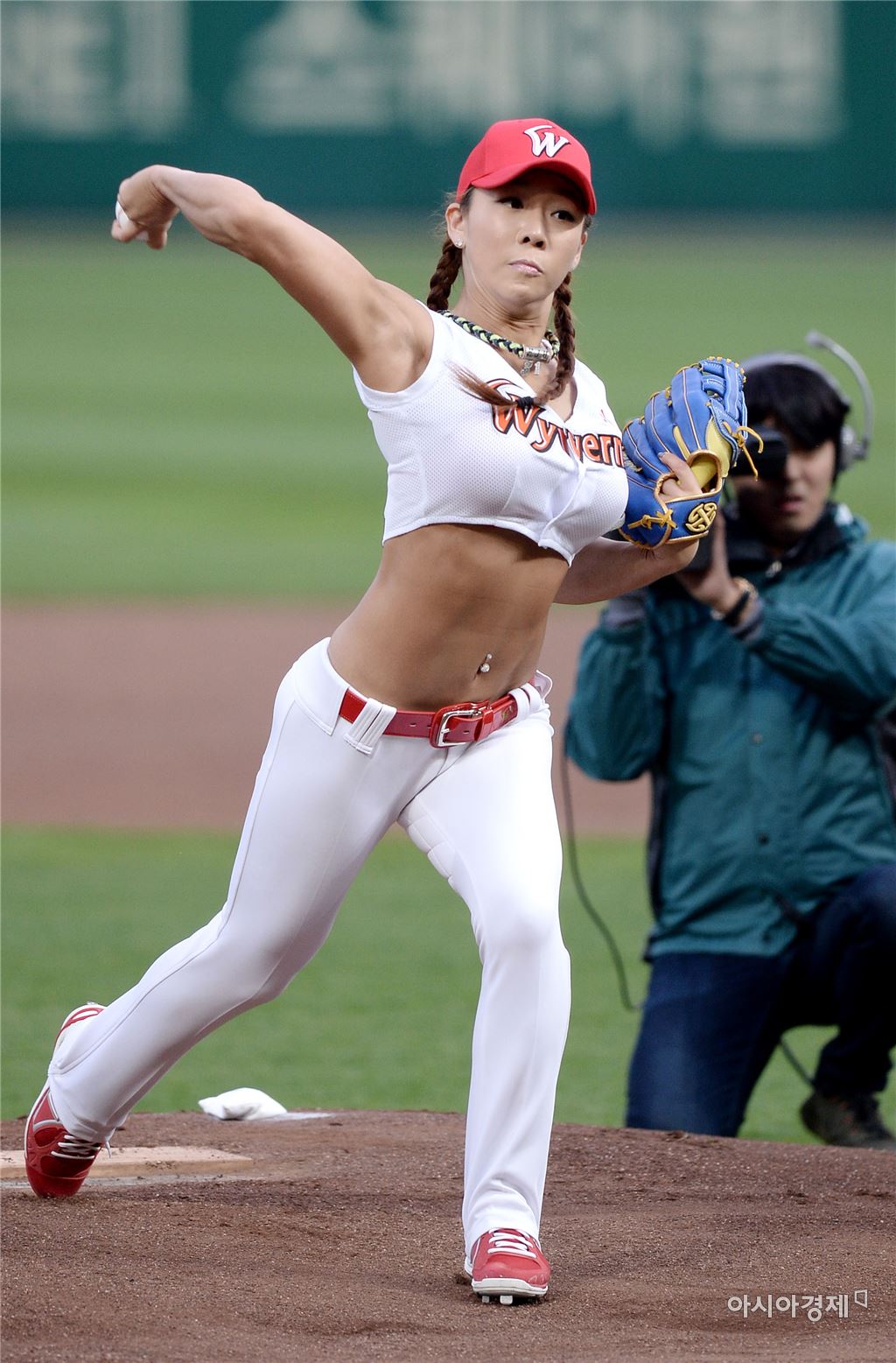 [문학=아시아경제 김현민 기자] 프로야구 넥센 히어로즈와 SK 와이번스의 2016 KBO리그 경기가 19일 인천 문학구장에서 열렸다. 스포츠모델 겸 휘트니스 선수 김정화가 시구하고 있다. 김현민 기자 kimhyun81@asiae.co.kr<ⓒ세계를 보는 창 경제를 보는 눈, 아시아경제(www.asiae.co.kr) 무단전재 배포금지>