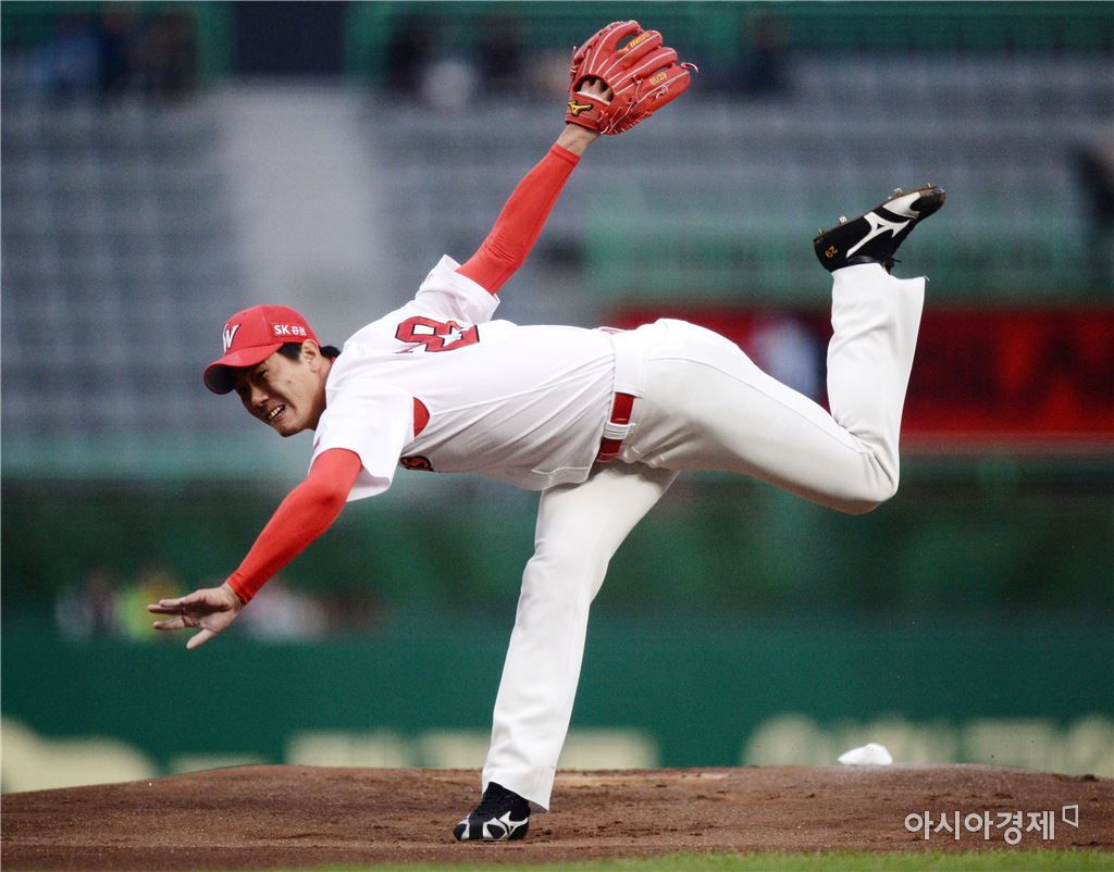[문학=아시아경제 김현민 기자] 프로야구 넥센 히어로즈와 SK 와이번스의 2016 KBO리그 경기가 19일 인천 문학구장에서 열렸다. SK 선발투수 김광현이 역투하고 있다. 김현민 기자 kimhyun81@asiae.co.kr<ⓒ세계를 보는 창 경제를 보는 눈, 아시아경제(www.asiae.co.kr) 무단전재 배포금지>