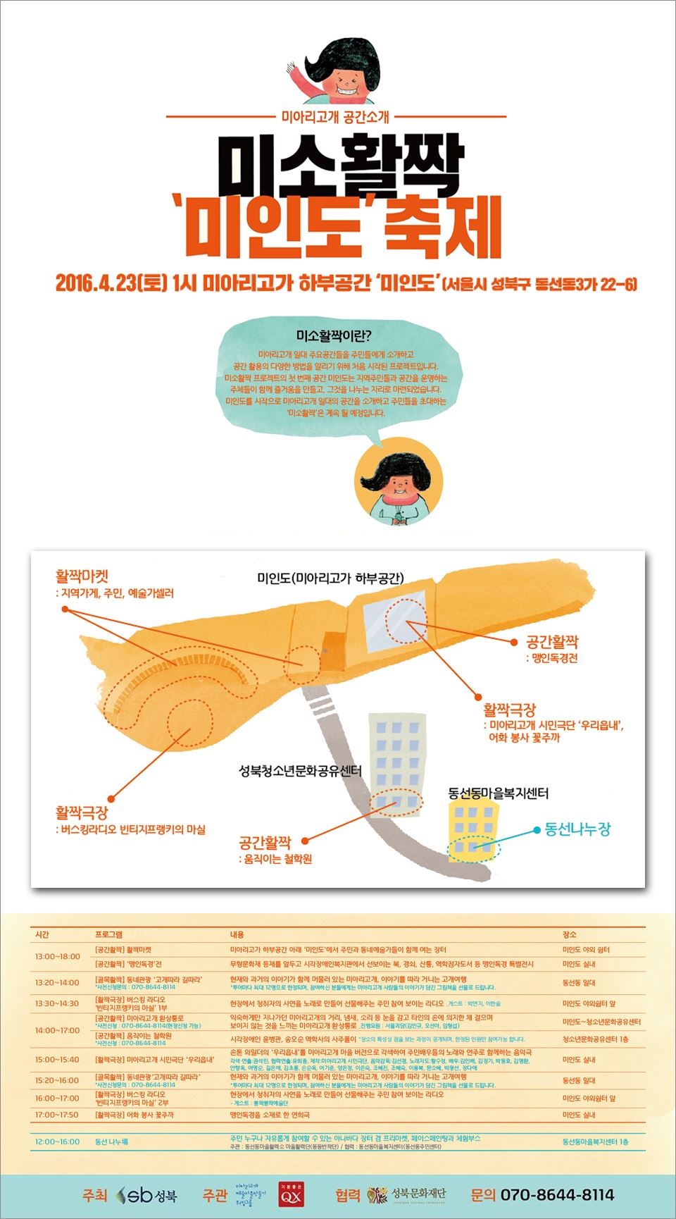 [아시아경제 오진희 기자]성북문화재단은 23일 오후 1시부터 6시까지 미아리 하부공간 '미인도'에서 '미아리고개 공간소개 활짝(미소활짝)' 프로젝트를 개최한다.이 프로젝트는 이 일대 주요공간들을 주민들에게 소개하고 공간 활용 방법을 알리기 위해 마련됐다. '미아리고개 일대 역사문화적 가치 활용방안 연구'의 시범사업으로, 미아리고개 일대의 역사문화적 가치를 조명하고 이를 지역 고유의 문화콘텐츠로 개발하고자 추진됐다. ‘미인도’ 공간은 2014년 한국문화예술위원회의 공공미술 시범사업인 '지역재생+예술'에 선정돼 건축가, 지역예술가, 그리고 성북문화재단 등이 협력하여 조성됐다.'미소활짝' 프로젝트에는 지역가게, 주민, 예술가들이 셀러로 참여하는 '활짝마켓', 시각장애 역학사들의 '움직이는 철학원', 미아리고개 일대 이야기를 따라 거니는 마을관광 '고개 따라 길 따라', 그리고 무형문화재 등록(서울 맹인 안택경)을 앞두고 있는 '맹인독경'을 소재로 한 연희극 '어화 봉사 꽃주까' 등이 진행된다.오진희 기자 valere@asiae.co.kr<ⓒ세계를 보는 창 경제를 보는 눈, 아시아경제(www.asiae.co.kr) 무단전재 배포금지>