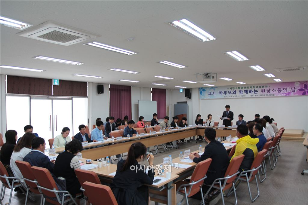 [아시아경제 문승용] 나주시 시민소통위원회 자치교육분과(분과위원장 최진연)는 20일 오후 초등학교 교사와 학부모 대표가 교육현장의 목소리를 듣고 나주교육 발전에 대한 상호 의견을 교환하는 간담회를 열었다.이날 간담회는 나주시 교육체육과에서 '2016년 교육지원경비 편성 및 초등학교 학력향상 지원현황'에 대한 설명 이후 일선 교사와 학부모가 건의하고 상호 의견을 나누는 시간으로 진행됐다.일선 교사들은 교육지원경비 정산절차의 간소화와 운영프로그램의 학교 자율운영방안 등 교육지원 사업을 추진하면서 애로사항 등을 건의했으며, 학부모는 학교 운동장 배수문제 등 시설보수 등의 내용을 교육지원청에 건의했다.이날 간담회를 주관한 자치교육분과 최진연 위원장은 “일선교사와 학부모님이 건의한 사항에 대해서는 정책 반영과 개선될 수 있도록 함께 노력해 주실 것”을 시 및 교육지원청 관계자에 요청했다.시 교육체육과 관계자는 “일선 학교 교사와 학부모 대표의 현장의 목소리를 자주 경청하고 교육정책에 반영해 다수 보편적 교육 복지 추진과 학력향상을 위한 교육기반을 조성하는 데 최선을 다하겠다”고 밝혔다.문승용 편집국부장 msynews@<ⓒ세계를 보는 창 경제를 보는 눈, 아시아경제(www.asiae.co.kr) 무단전재 배포금지>