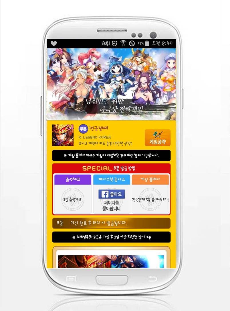 이번에 추가한 스페셜 쿠폰은 신작 모바일 미소녀 전략 RPG(Role Playing Game, 롤플레잉 게임) '전국쟁패' 쿠폰으로 등록하면 3만 원 상당의 유니크 캐릭터 카드를 지급한다.지난 19일 정식 출시 된 ‘전국쟁패’는 하극상이 빗발치는 난세를 배경으로 미소녀 캐릭터들과 함께 전략적인 전투를 펼치는 미소녀 전략 RPG다. 전국시대의 무장들을 미소녀화 한 캐릭터 일러스트를 특징으로 전국 최강자를 가리는 PvP(유저 간 대결) 시스템과 서버 최강자만이 가질 수 있는 ‘다이묘’ 칭호, 특별한 권리 등 다채로운 전투 콘텐츠를 즐길 수 있다. 또한 간단하고 쉬운 조작법으로 남녀노소 누구나 쉽게 플레이할 수 있다.사전등록에서 유저 15만 명 등록이라는 지대한 기록을 세워 이목을 끈바 있으며 지난 6일엔 프로모션 영상을 공개하여 유저들의 호기심을 자극하고 있다.온라인이슈팀 issue@asiae.co.kr<ⓒ세계를 보는 창 경제를 보는 눈, 아시아경제(www.asiae.co.kr) 무단전재 배포금지>