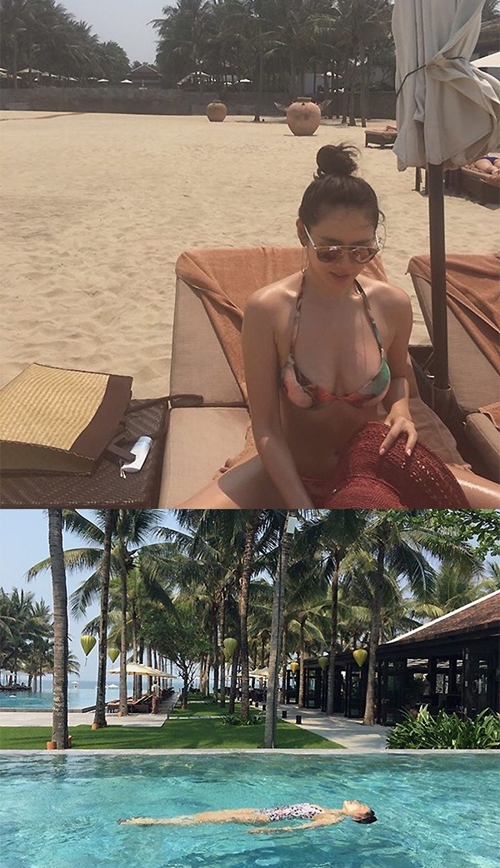 [아시아경제 온라인이슈팀] 손예진이 해외에서 비키니 자태를 공개했다. 손예진은 지난 23일 자신의 인스타그램에 해외에서 여유를 즐기고 있는 자신의 근황이 담긴 사진을 올렸다. 사진 속 손예진은 화려한 색감의 비키니를 입고 앉아 글래머 자태를 드러내고 있다. 홀로 수영장에서 배영하며 영유를 즐기는 모습과 과일을 즐기는 모습 등이 눈에 띈다. <center><div class="slide_frame"><input type="hidden" id="slideIframeId" value="2015102611055065803A">