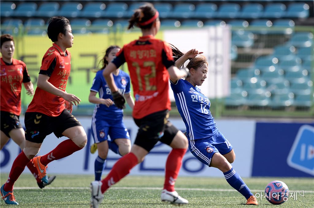 [효창=아시아경제 김현민 기자] 여자축구 2016 WK리그 서울시청과 인천현대제철의 경기가 25일 서울 효창운동장에서 열렸다. 현대제철 장슬기가 상대 수비를 뚫고 추가골을 넣고 있다. 김현민 기자 kimhyun81@asiae.co.kr<ⓒ세계를 보는 창 경제를 보는 눈, 아시아경제(www.asiae.co.kr) 무단전재 배포금지>