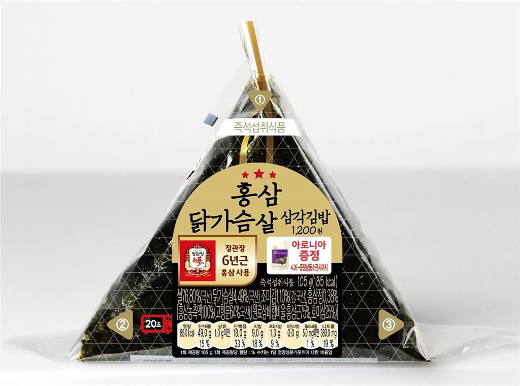 [아시아경제 조호윤 기자] 세븐일레븐이 건강기능식품 브랜드 정관장과 손잡고 국내 최초로 홍삼을 활용한 삼각김밥을 선보였다. 향후에도 건강한 먹거리에 대한 관심이 높은 추세를 반영해 건강 푸드를 다양하게 선보일 예정이다.세븐일레븐은 홍삼을 사용한 '홍삼닭가슴살 삼각김밥'을 선보인다고 26일 밝혔다. '홍삼 삼각김밥'은 정관장과 손잡고 홍삼을 사용해 만든 국내 최초 삼각김밥이다. 정관장 6년근 홍삼 농축액100%를 넣어 만든 홍삼밥에 닭가슴살, 죽순, 우엉, 표고버섯 등을 더했다. 가격은 1200원. 출시 기념 행사도 진행한다. 구매 고객 대상으로 KGC인삼공사 자연소재 브랜드 굿베이스 '자연이 키운 아로니아'를 무료 증정하는 행사를 진행할 계획이다.최윤정 세븐일레븐 삼각김밥 상품기획자(MD)는 "기존 삼각김밥과 차별화한 홍삼 삼각김밥은 맛과 영양을 모두 챙길 수 있는 프리미엄 간편식"이라며 "소비자의 건강과 입맛을 고려해 다양한 재료로 많은 시도하고 있다"고 말했다.조호윤 기자 hodoo@asiae.co.kr<ⓒ세계를 보는 창 경제를 보는 눈, 아시아경제(www.asiae.co.kr) 무단전재 배포금지>