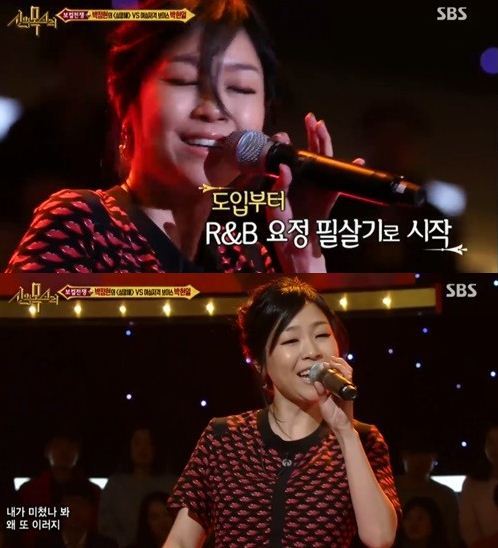 [아시아경제 정유진 인턴기자] 가수 박정현이 AOA의 '심쿵해'를 명곡으로 만들었다.27일 방송된 SBS 예능 프로그램 '보컬전쟁-신의 목소리'에는 거미, 박정현, 윤도현, 김조한, 정인 등이 나와 아마추어 실력자들과 노래 대결을 펼쳤다. 이날 박정현은 AOA의 히트곡 '심쿵해'를 선곡 당해 무대를 선보여야 했다.그동안 실력파 가수 거미와 김조한, 윤도현 등은 아이돌 그룹의 젊고 상큼한 기운을 자신들만의 스타일로 재해석하는 데 애를 먹는 모습을 보였다. 때문에 노래 여제 박정현의 '심쿵해' 무대에 관심이 모아졌다.R&B 발라드 버전으로 편곡한 박정현의 '심쿵해'는 AOA에게서는 볼 수 없었던 또 다른 매력을 드러내 듣는 이들은 감탄했다.하지만 심리적 부담감 때문이었는지 중간에 멜로디를 잊는 실수를 한 박정현은 세 번의 무대 끝에 결국 아마추어 경쟁자에게 압도적으로 승리했다.정유진 인턴기자 icamdyj718@asiae.co.kr<ⓒ세계를 보는 창 경제를 보는 눈, 아시아경제(www.asiae.co.kr) 무단전재 배포금지>