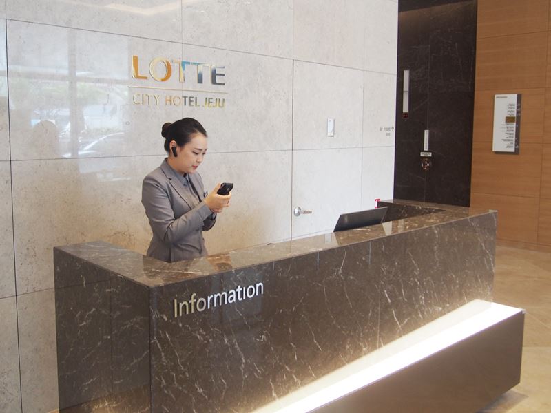 롯데시티호텔 제주 직원이 KT파워텔의 LTE 무전기 라져를 사용하고 있다.