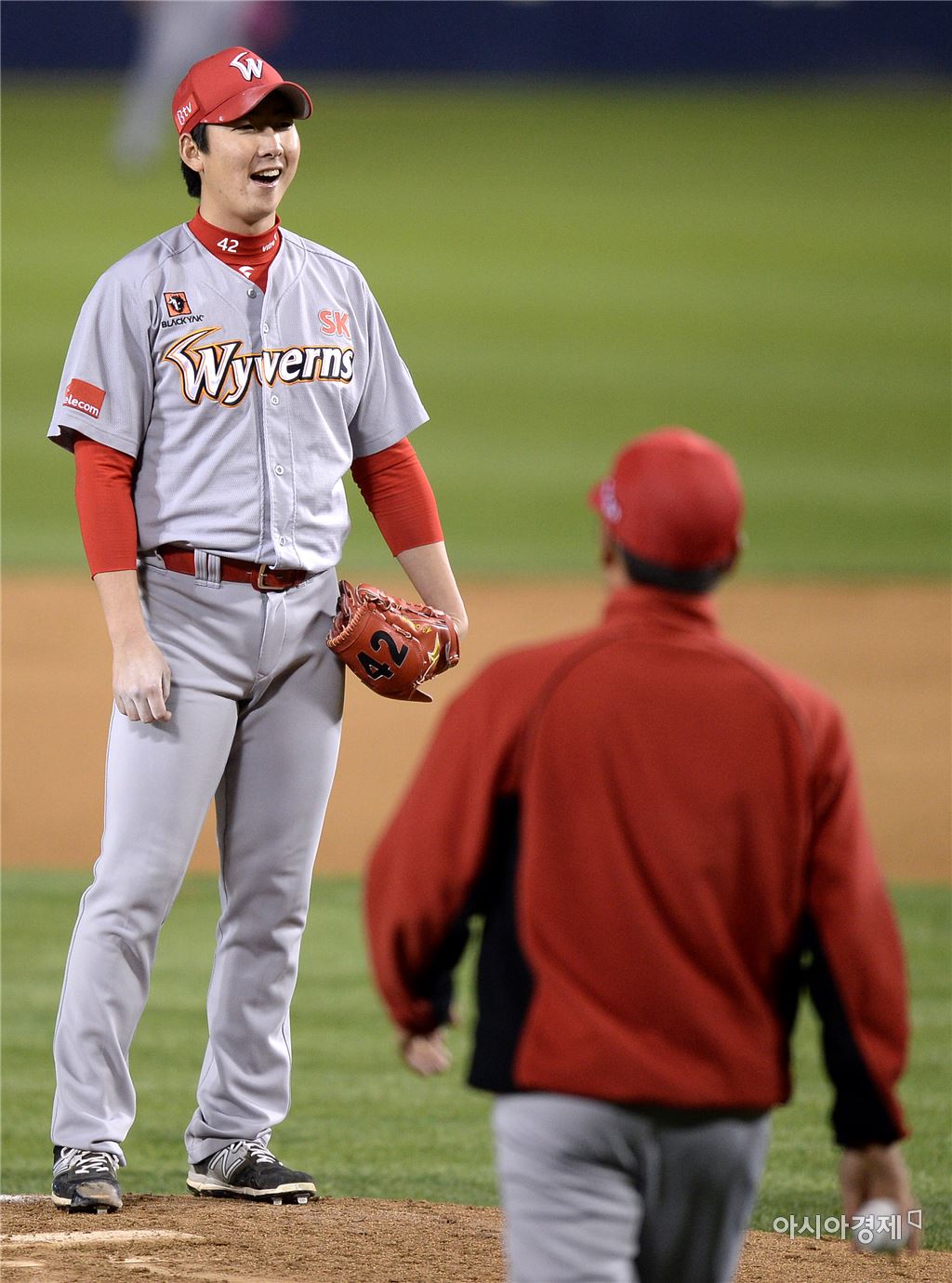 [잠실=아시아경제 김현민 기자] 프로야구 SK 와이번스와 두산 베어스의 2016 KBO리그 경기가 28일 잠실구장에서 열렸다. SK 선발 문승원이 6회말 1사 2,3루에서 두산 양의지에게 동점 1타점 적시타를 허용한 뒤 강판되고 있다.김현민 기자 kimhyun81@asiae.co.kr<ⓒ세계를 보는 창 경제를 보는 눈, 아시아경제(www.asiae.co.kr) 무단전재 배포금지>