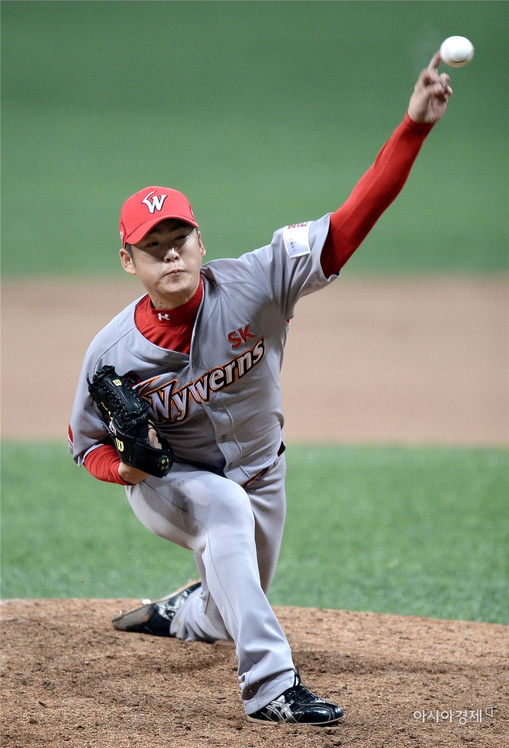 [고척돔=아시아경제 김현민 기자] 프로야구 SK 와이번스와 넥센 히어로즈의 2016 KBO리그 경기가 29일 서울 양천구 고척스카이돔에서 열렸다. SK 마무리 박희수가 9회말 역투하고 있다. 김현민 기자 kimhyun81@asiae.co.kr<ⓒ세계를 보는 창 경제를 보는 눈, 아시아경제(www.asiae.co.kr) 무단전재 배포금지>