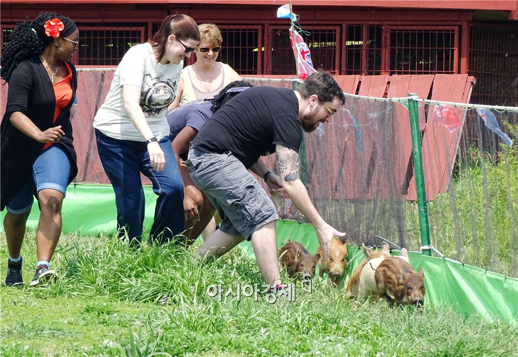 주말인 30일 함평나비대축제가 열리고 있는 함평엑스포공원을 찾은 외국인들이 가축몰이 체험을 하면서 즐거워하고 있다. '나비따라 꽃길따라'라는 주제로 오는 5월 8일까지 함평엑스포공원에서 열린다.