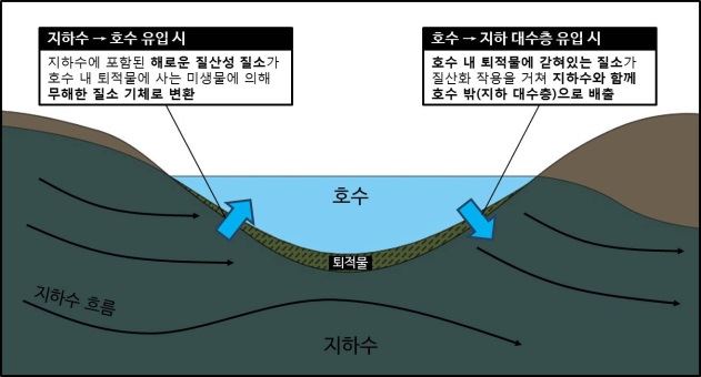 [아시아경제 정종오 기자] 녹조의 원인이 지표수(하천, 호수)와 지하수에서 질소의 존재와 순환에 있다는 연구결과가 나왔다. 질소는 생태계에 중요한 영양물질이다. 또한 수질 오염원인 1위로 꼽힐 정도로 너무 많이 공급되면 해롭다. 호수에 질소로 오염된 많은 물이 흘러들면 녹조현상이 일어날 수 있다. 한국지질자원연구원(원장 김규한, KIGAM)과 미국지질조사소(USGS), 버지니아해양과학원(VIMS) 국제 공동연구팀이 지하수의 순환이 호수 녹조현상의 주원인인 유해한 질소를 줄이거나 호수 외부로 배출시킬 수 있다는 연구결과를 발표했다.연구팀은 지하수가 지표수(호수)로 유입되는 과정과 반대로 호수의 물이 지하 대수층으로 유입되는 과정에서 일어나는 여러 가지 현상을 관찰했다. 지하수와 지표수가 서로 연결돼 서로의 환경에 영향을 미친다는 물 순환 과정의 중요한 정보를 도출해냈다.지하수가 퇴적층을 통해 지표수(호수)로 들어오는 과정에서 대부분의 질산염(질산성 질소)은 호수 내 얕은 퇴적물에 사는 미생물들에 의해 변환된다. 자연적 정화 과정들은 질산성 질소처럼 해로운 형태의 질소를 무해한 질소 기체로 바꾼다. 연구팀은 이러한 과정을 일으키는 미생물들의 유전자가 연구지역인 미국 메사추세츠주 케이프카드 호수 내 퇴적물 중 어디에나 존재함을 확인했다.반대로 같은 호수 내에서 호수 물이 퇴적물을 통해 지하 대수층으로 들어갈 때는 또 다른 미생물학적 과정인 질산화가 일어났다. 주로 조류의 분해로부터 발생해 호수 내 퇴적물에 갇혀 있는 질소는 질산화 작용을 거쳐 이동하는 지하수에 의해 호수 밖(지하)으로 이동될 수 있는 화학적 형태(질산성 질소)로 바뀌어 지하 대수층으로 배출된다.연구대상인 케이프카드 호수의 퇴적층은 호수로 유입되는 물을 정화하는 수세미 같은 역할을 하면서 동시에 지하 대수층을 질소로 오염시키기는 역할을 한다는 결론에 이르렀다. 결론적으로 호수로 들어가거나 나가는 지하수가 흐르는 방향과 지하수에 녹아있는 산소와 탄소 등 지하수의 화학적 특성이 미생물들에 의해 질소가 어떤 변환 과정을 거치게 될지를 결정한다고 밝혔다.연구결과는 'Environmental Science & Technology' 3월11일자(논문명: Hydrologic Controls on Nitrogen Cycling Processes and Functional Gene Abundance in Sediments of a Groundwater Flow-Through Lake)에 실렸다. 현성필 한국지질자원연구원 책임연구원은 "이번 연구결과와 같은 지하수의 순환 과정과 현상을 이해하는 연구는 수 생태계와 환경의 건강성을 유지하는 데 매우 중요하다"며 "국제공동연구를 통해 얻은 값진 성과가 앞으로 지하수와 지표수 환경 보전 연구에 활용될 수 있도록 노력하겠다"고 말했다. 정종오 기자 ikokid@asiae.co.kr<ⓒ세계를 보는 창 경제를 보는 눈, 아시아경제(www.asiae.co.kr) 무단전재 배포금지>