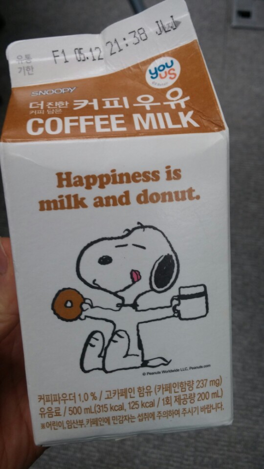 [아시아경제 김현정 기자] "아이스 아메리카노 연하게요. 보리차처럼, 이렇게 팔아도 되나 싶을 정도로 해서 주세요."커피를 주문할 때마다 하는 말이다. 아이스 아메리카노를 기준으로 하루 1잔을 초과해 마시면 심장이 뛰고 손이 떨릴 만큼 카페인에 민감하기 때문이다. 술보다 못 마시는 게 커피다. 그런 기자에게 치명적인 제품이 최근 인터넷상에서 화제가 되고 있다. 편의점 GS25에서 판매하는 자체브랜드(PB) 제품 '더 진한 커피 담은 커피우유'다. 일명 '악마의 우유', '스누피의 도넛 펀치'라고 불린다. 가격은 1500원. 무시무시한 별명이 붙은 배경은 '카페인'에 있다. 500㎖ 용량에 237㎎의 카페인이 들어있다. '정신 차리게 하는 음료'로 유명한 레드불(250㎖)의 카페인 함량이 62.5㎎임을 감안하면 깜짝 놀랄 만한 숫자다. 스누피의 발 밑에는 '어린이, 임산부, 카페인에 민감자는 섭취에 주의하여 주시기 바랍니다'라는 경고문구까지 있다. 그 중 '민감자'에 해당하는 기자는 생체실험을 한다는 마음가짐으로 종이컵 한 잔(200㎖)을 가득 따라 마셨다. 맛은 기존의 커피우유보다 훨씬 달고, 커피맛도 진하다. 솔직히 말해 그리 특별할 것은 없다. 두번째 잔을 따라 한모금 더 마신 뒤 평소대로 업무를 했다. 20분쯤 지났을까. 약간의 흥분감과 함께 심장의 두근거림이 느껴졌다. 본인의 성향을 잊은 채 커피 두잔과 홍차 한 잔을 마셨다가 조퇴한 전력이 있는 기자는 실험을 중단했다. 같은 용량을 기준으로도 레드불보다 카페인양이 많은 건 사실이다. 레드불이 100㎖당 25mg, 더진한 커피우유가 47.4mg이다. 인터넷에서 알려진 것 처럼 '4배' 까지는 아니라는 얘기다. 카페인이 더 많이 함유된 음료도 많다. 100㎖를 기준으로 UCC 블렌디드 커피가 85.9mg, 조지아 다크블렌드가 70.4mg, 드롭탑 아침에 커피가 70mg의 카페인을 함유하고 있다. 같은 맥락에서 굳이 이름을 붙이자면 '지옥의 커피' 쯤 되겠다. 이들 역시 편의점에서 쉽게 구매할 수 있다. 최근 논란이 되는 이유는 고카페인 스팩과 대조적으로 패키지가 귀엽기 때문인 듯 하다. 귀여운 스누피가 졸린눈을 하고 한 손에는 도넛, 한 손에는 우유를 들고 입맛을 다시고 있다. 어린이 음료나 일반 우유 제품을 연상케 한다. "우유와 도넛이 행복이지(Happiness is milk and donut)." 스누피의 웃는 얼굴 위에 쓰여진 문구는 이제보니 복선이었다. 커피 얘기는 없다. 결론을 말하자면, 500㎖를 다 마시지는 말자. 제품 설명에도 '가족, 친구들과 나눠드세요~'라고 친절히 써 있다. 카페인만이 문제가 아니다. 한 팩의 열량은 315㎉. 흰 쌀밥 한공기보다 높다. 잠은 자기 싫고, 살은 찌고 싶다면 추천 별 다섯개다.김현정 기자 alphag@asiae.co.kr<ⓒ세계를 보는 창 경제를 보는 눈, 아시아경제(www.asiae.co.kr) 무단전재 배포금지>