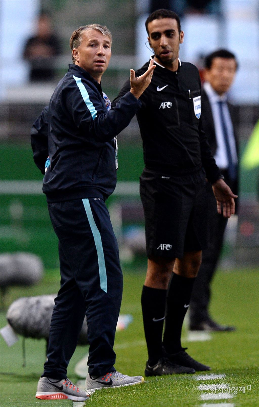 [전주=아시아경제 김현민 기자]2016 AFC 챔피언스리그(ACL) 전북 현대와 장쑤 쑤닝(중국)과의 조별리그 6차전이 4일 전주월드컵경기장에서 열렸다. 장쑤 단 페트레스쿠 감독이 심판에 어필하고 있다. 김현민 기자 kimhyun81@asiae.co.kr<ⓒ세계를 보는 창 경제를 보는 눈, 아시아경제(www.asiae.co.kr) 무단전재 배포금지>