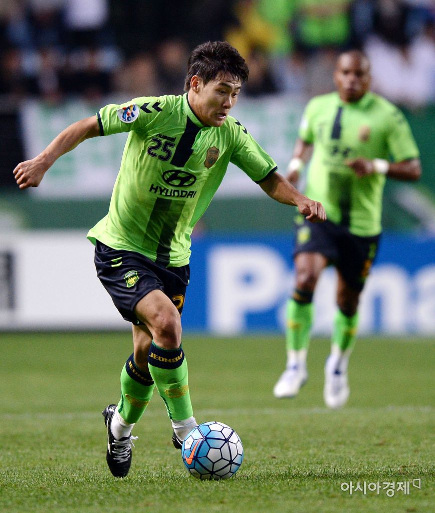 [전주=아시아경제 김현민 기자]2016 AFC 챔피언스리그(ACL) 전북 현대와 장쑤 쑤닝(중국)과의 조별리그 6차전이 4일 전주월드컵경기장에서 열렸다. 전북 최철순이 상대 수비를 뚫고 공격하고 있다. 김현민 기자 kimhyun81@asiae.co.kr<ⓒ세계를 보는 창 경제를 보는 눈, 아시아경제(www.asiae.co.kr) 무단전재 배포금지>