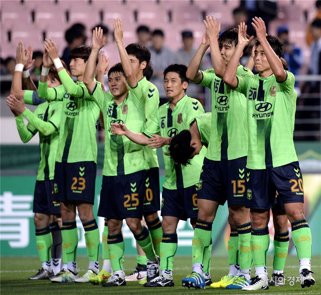 [전주=아시아경제 김현민 기자]2016 AFC 챔피언스리그(ACL) 전북 현대와 장쑤 쑤닝(중국)과의 조별리그 6차전이 4일 전주월드컵경기장에서 열렸다. 전북 선수들이 2-2 무승부로 16강 진출(조 1위)을 확정한 뒤 기뻐하고 있다. 김현민 기자 kimhyun81@asiae.co.kr<ⓒ세계를 보는 창 경제를 보는 눈, 아시아경제(www.asiae.co.kr) 무단전재 배포금지>