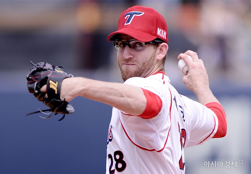 [광주=아시아경제 김현민 기자] 프로야구 롯데 자이언츠와 KIA 타이거즈의 2016 KBO리그 경기가 어린인날인 5일 광주구장에서 열렸다. KIA 선발투수 지크가 역투하고 있다. 김현민 기자 kimhyun81@asiae.co.kr<ⓒ세계를 보는 창 경제를 보는 눈, 아시아경제(www.asiae.co.kr) 무단전재 배포금지>