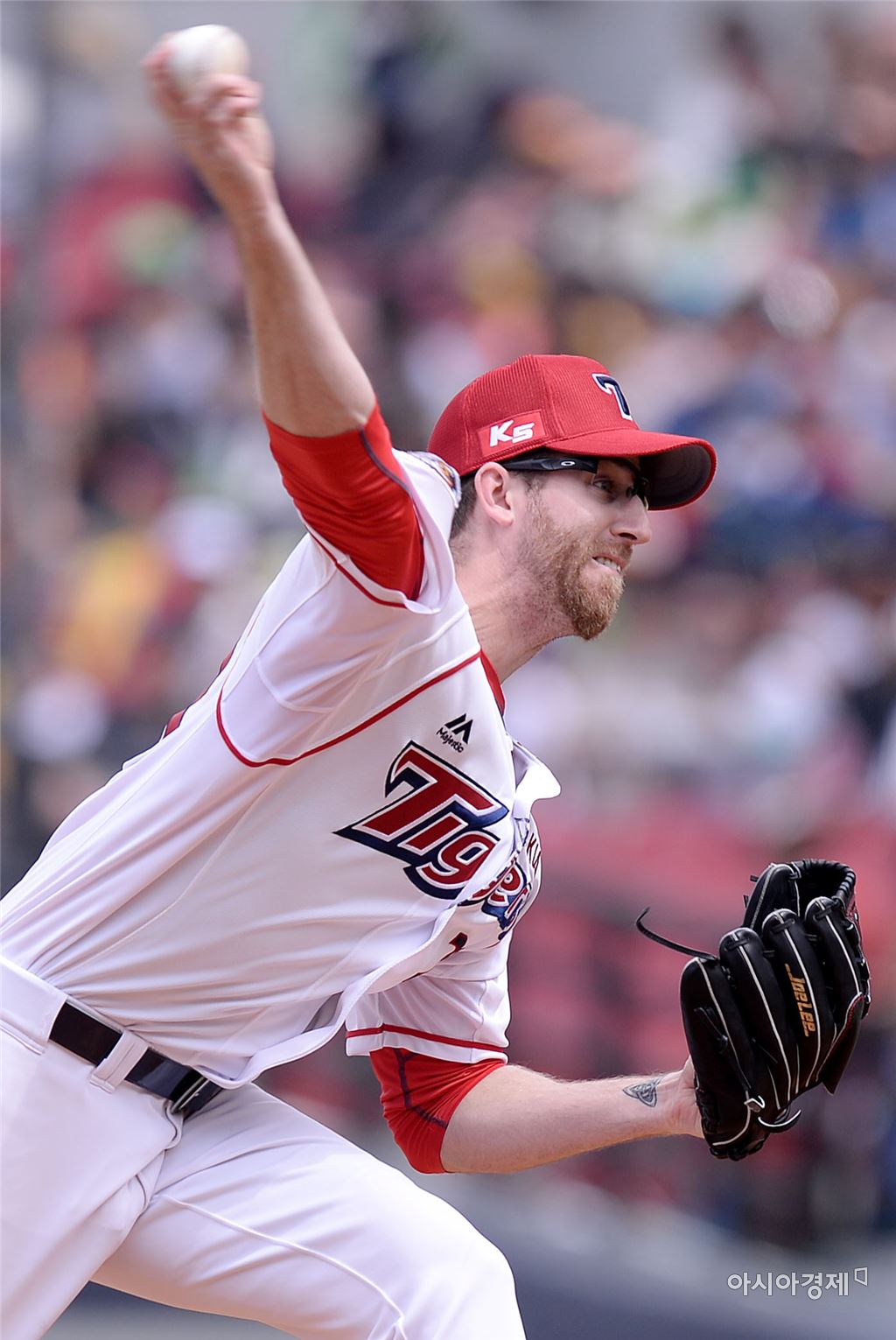 [광주=아시아경제 김현민 기자] 프로야구 롯데 자이언츠와 KIA 타이거즈의 2016 KBO리그 경기가 어린인날인 5일 광주구장에서 열렸다. KIA 선발투수 지크가 역투하고 있다. 김현민 기자 kimhyun81@asiae.co.kr<ⓒ세계를 보는 창 경제를 보는 눈, 아시아경제(www.asiae.co.kr) 무단전재 배포금지>