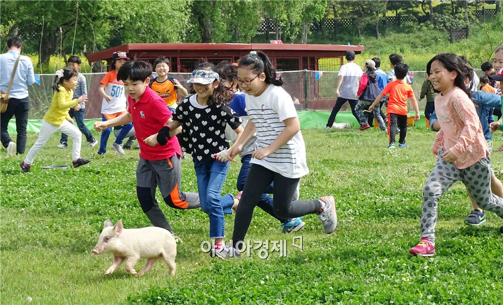 5일 어린이날을 맞아 함평나비축제가 열리고 있는 함평엑스포공원에 전국에서 관광객들이 몰려들어 인산인해를 이루었다. 이날 어린이들이 가축몰이 체험을 하면서 즐거운 시간을 보내고있다.