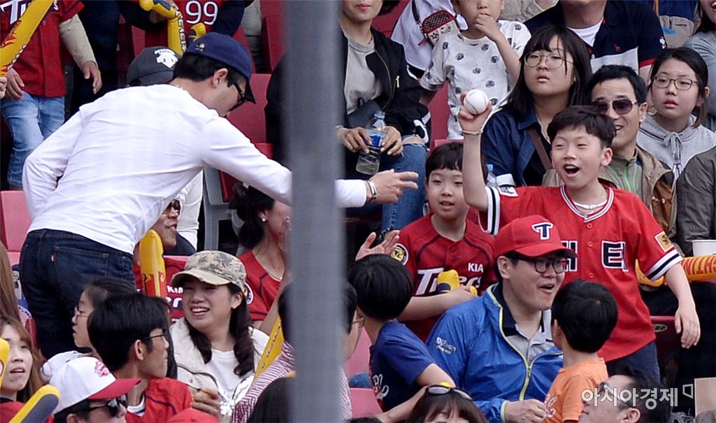 [광주=아시아경제 김현민 기자] 프로야구 롯데 자이언츠와 KIA 타이거즈의 2016 KBO리그 경기가 어린인날인 5일 광주구장에서 열렸다. KIA 응원석의 한 어린이가 파울볼을 건네받고 좋아하고 있다.김현민 기자 kimhyun81@asiae.co.kr<ⓒ세계를 보는 창 경제를 보는 눈, 아시아경제(www.asiae.co.kr) 무단전재 배포금지>
