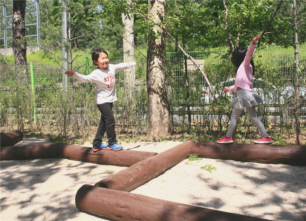 통나무 균형잡기 등 10종의 목재 놀이시설 설치, 12종의 수목과 초화 심어