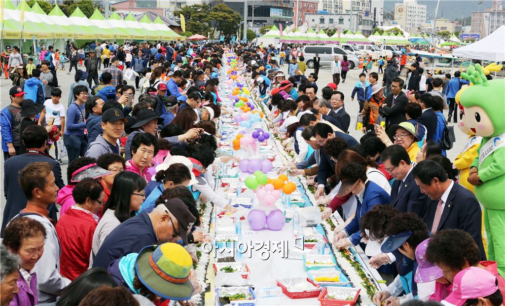 "관광객 12만명, 50억원 이상의 경제효과" [아시아경제 노해섭 기자]완도군(군수 신우철) ‘설군120주년, 2016장보고수산물축제’가 수산물 홍보와 지역경제 활성화란 두 마리 토끼를 잡았다. '보고, 먹고, 체험하는 행복한 완도여행'이란 기치를 내걸고 지난 4일부터 5일간 완도해변공원 일대에서 열린 장보고수산물축제에 12만명의 관광객이 방문해 성황리에 막을 내렸다. 축제가 개최되는 완도읍내 음식점과 숙박업소는 관광객들로 넘쳐났으며, 배를 이용해 들어가야 하는 청산도와 보길도 등 인근 섬들도 관광객들로 인산인해를 이뤘다. 광주에서 왔다는 김모씨(48세,남)는 ?주일 전에 숙박업소를 예약하려고 했으나 이미 예약이 끝나 하루일정으로 왔다”며 아쉬움을 표했다. 관광객들은 축제장 뿐 아니라 완도수목원, 완도타워, 명사십리 해수욕장 등의 주변 관광지를 방문하며 완도의 매력에 푹 빠졌다. 축제기간동안 싱싱한 완도의 수산물을 저렴한 가격에 먹을 수 있어 관광객 만족도도 높았다. 전복라면, 수산물 깜짝 경매, 215m 해조류 대형 김밥 만들기, 맨손고기잡기 체험장에는 수많은 관광객 발길이 이어졌다.2016완도군장보고수산물축제_전통 노젓기 대회