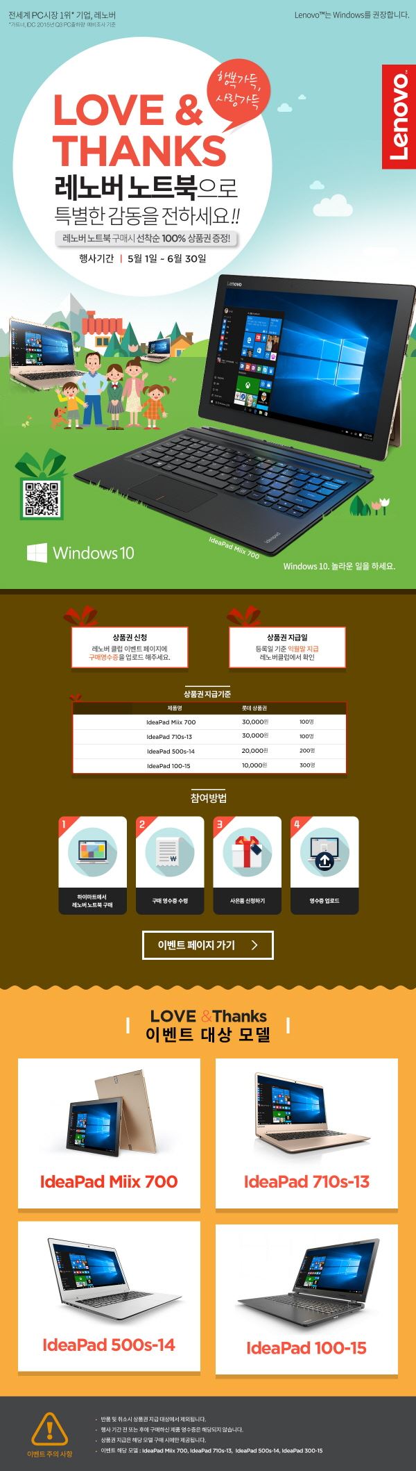 [아시아경제 김유리 기자] 한국레노버가 롯데하이마트에서 구매고객을 대상으로 프로모션을 진행한다고 10일 밝혔다. 지난 1일부터 다음 달 30일까지 '행복 가득, 사랑 가득'이라는 슬로건으로 진행되는 이번 이벤트를 통해, 소비자들은 구매 혜택과 함께 레노버의 다양한 인기 상품을 만나볼 수 있다. 특히 이번 행사에서는 12형부터 15형까지 다양한 사이즈의 레노버 제품이 마련돼, 사용자의 용도와 라이프스타일에 맞는 노트북을 한 자리에서 비교해서 구매할 수 있다.한국레노버는 전국 하이마트 매장에서 행사 대상 제품을 구매하고 레노버 클럽 이벤트 페이지에 구매영수증을 등록하는 고객 대상으로, 제품에 따라 최대 3만원 상당의 상품권을 선착순으로 증정한다. 이벤트 대상 제품으로는 12형 투인원 노트북인 '아이디어패드 믹스 700(IdeaPad Miix 700)', 뛰어난 속도와 경량을 자랑하는 13형 '아이디어패드 710S(IdeaPad 710S)', 성능과 휴대성을 모두 만족시키는 멀티미디어 14형 노트북 '아이디어패드 500S(IdeaPad 500S)', 경제적인 가격에 높은 안정성과 생산성을 제공하는 15형 '아이디어패드 100(IdeaPad 100)'이 포함된다. 특히 아이디어패드 믹스 700은 고성능과 스타일리시한 디자인을 겸비한 투인원 노트북으로, 풀HD IPS 고릴라 글래스와 독특한 손목시계 밴드 힌지를 채택해 차별화를 꾀한 것이 특징이다. 강용남 한국레노버 대표는 "가정의 달을 맞아 선물을 준비하는 고객들에게 이번 이벤트가 좋은 기회가 될 수 있기를 기대한다"며 "앞으로도 혁신적인 제품과 적극적인 프로모션을 통해 전세계 1위 PC 기업으로서의 명성을 이어갈 것"이라고 말했다. 이벤트에 대한 자세한 내용은 레노버 클럽 이벤트 페이지()에서 확인할 수 있다.김유리 기자 yr61@asiae.co.kr<ⓒ세계를 보는 창 경제를 보는 눈, 아시아경제(www.asiae.co.kr) 무단전재 배포금지>